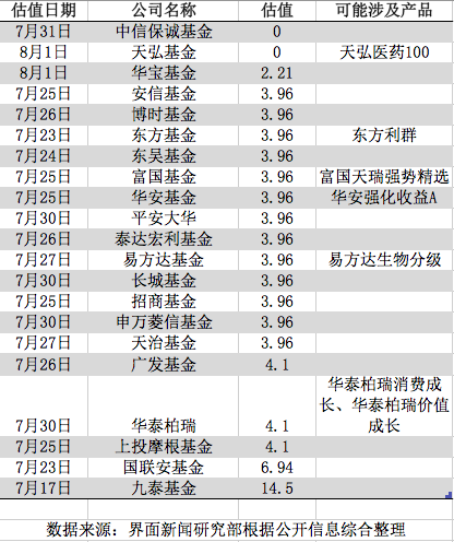 从目前情况来看,长生生物的疫苗危机正是涉及了公共健康安全重大违法一项。界面新闻梳理已发布的估值调整公告,目前至少有21家基金公司持仓该股。截止至8月1日,估值调整情况如下: