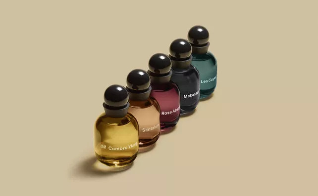 The Essences(淡香精)系列有五款围绕着檀香,广藿香或玫瑰为主要成分的香水,除了50ML的常规包装还有10ML的滚珠版本。