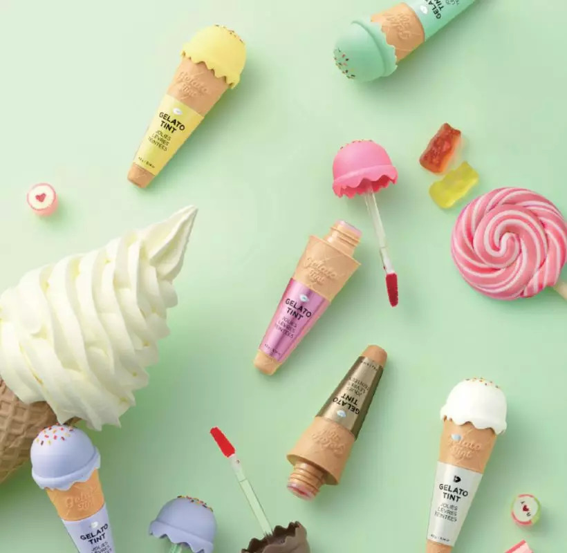 菲诗小铺(The Face Shop)推出甜筒外形的染唇液,共有六个色号,有番茄红、姨妈红、水红色等,售价为12000韩元(RMB72)。