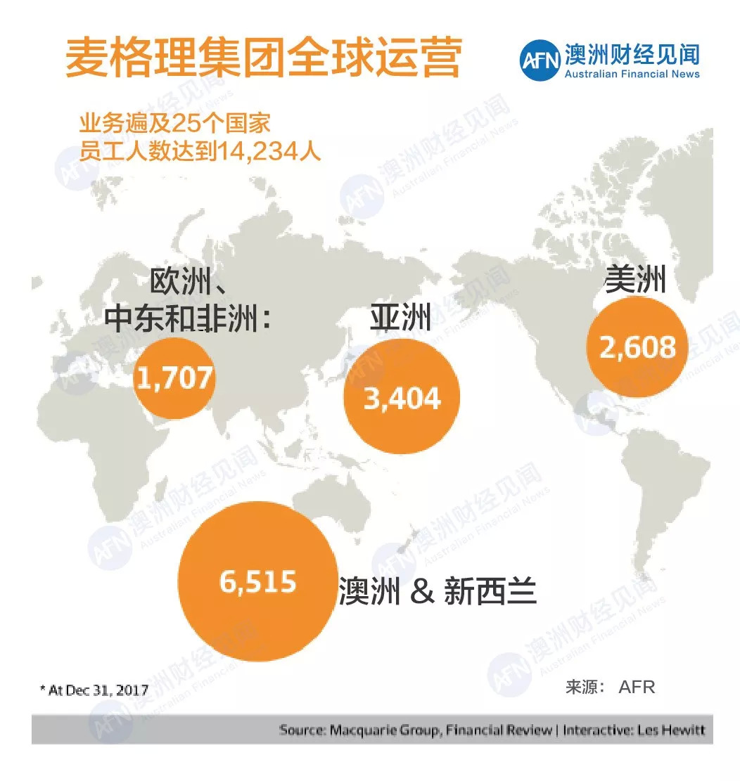 麦格理集团的海外业务规模和扩张速度可以说超乎很多人的想象。截至目前,麦格理集团在全球25个国家拥有超过1.4万名员工。全球金融中心城市从美国纽约、英国伦敦、日本东京、中国北京到阿联酋迪拜、南非开普敦、巴西圣保罗都有麦格理的办事处。据统计,麦格理集团目前为全球客户管理的资产超过4700亿澳元。