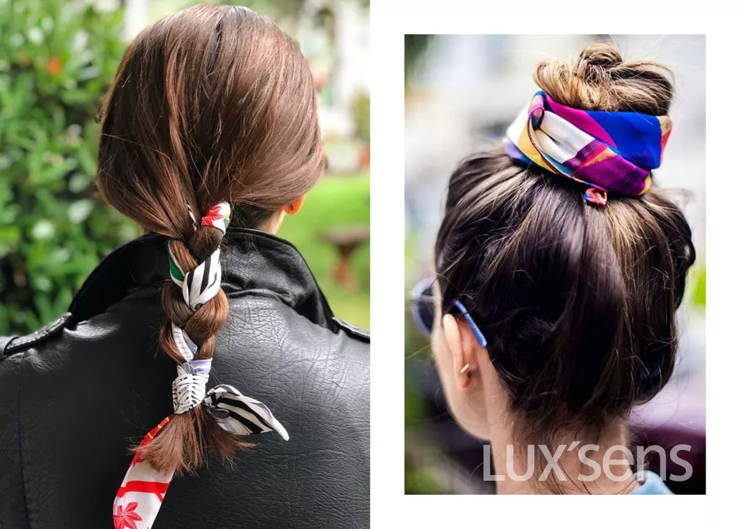 另外还有一种难度系数比较高的用法,那就是当作头饰啦,无论是绑马尾辫还是丸子头,只要你手巧,真的是效果超级好!