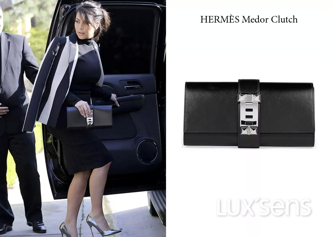 比如卡戴珊手上的这一只 Medor Clutch,铆钉的装饰加上 Hermes 顶级制造工艺,极具高级感的同时还很潮。