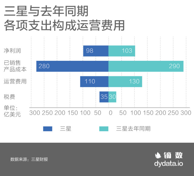 企业营收是一个企业销售收入的粗加工数据,只能粗略的体现企业经营情况。企业营收需要扣除货物成本、营业费用(人工费、地租等)、税费等支出体现一个企业的真正的盈利水平(净利润)。营业利润是指企业营收扣除货物成本和营业费用后得到利润。在总营收下降的情况下,营业利润反而上升,这种情况说明三星正在积极的缩减营业费用开支。但是即便三星和去年同期相比已经从约130亿美元下降到了约110亿美元,但是仍然和苹果的78亿美元相差甚远。