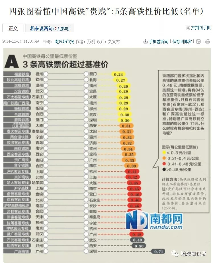 2014年,南方都市报一篇题为《四张图看懂中国高铁“贵贱”:5条高铁性价比低》的文章,在互联网引起广大网民的强烈反响。