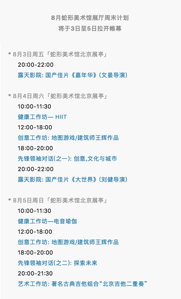 从书店出来就是一片巨大的绿地广场,蛇形美术馆就在这里。这个世界一流的美术馆,作为伦敦的文化地标首次来到中国,推出了系列“展亭周末”文化项目。