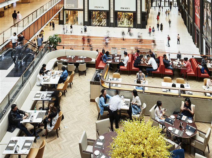 当推开王府中环东座门廊的一瞬间,你会觉得自己仿佛就置身于香港,标志性的开放空间Café Landmark也出现在了这里,仿佛悬在中庭的秘密花园。