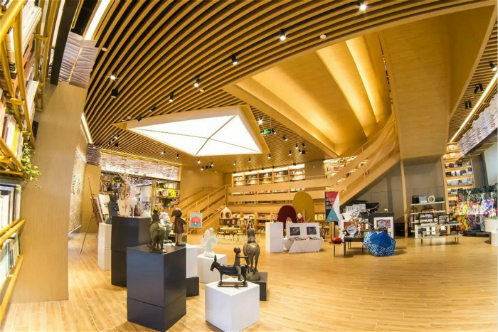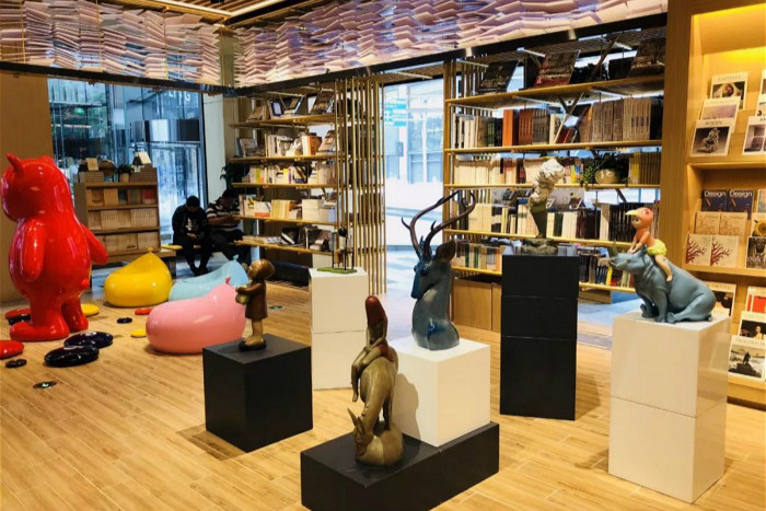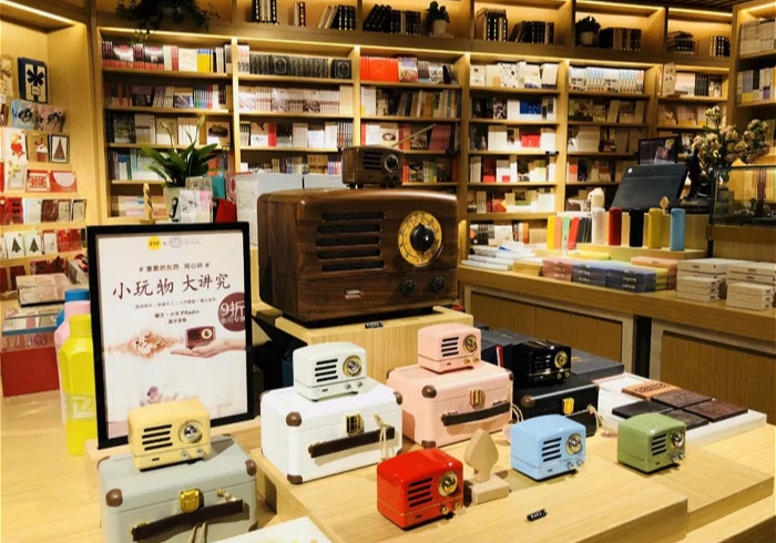作为艺术设计类书籍最多的一家门店,在这里能看见莫奈、梵高、达利等大师的画册,顺着木质楼梯上二楼,首先会被几个色彩、大小不一的收音机吸引。而摆满的人文、社科和生活类的书目,以及不远处孩子们的天堂“言宝乐园”,也让这里充满着人文气息。