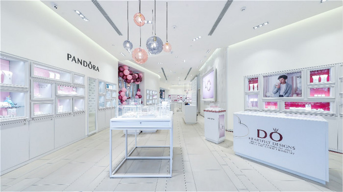 在维秘全球旗舰店的另一侧,就是潘多拉旗舰店。这个全国最大的旗舰店共有两层,巨大的橱窗展示给人们提供更多的珠宝搭配灵感。