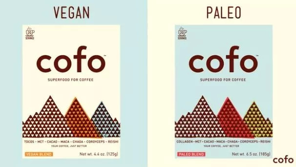 Cofo提倡VEGAN/PALEO Blend(素食与旧石器饮食法),即素食为主,低碳饮食。基于这样的理念,Cofo生产出一种可以混合到咖啡中的素食有机粉末。