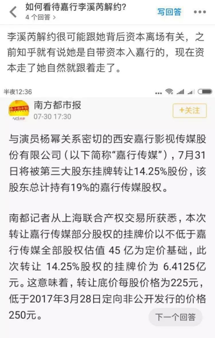 至于解约的原因也是众说纷纭,知乎上有人说解约的原因是跟她背后资本离场有关。