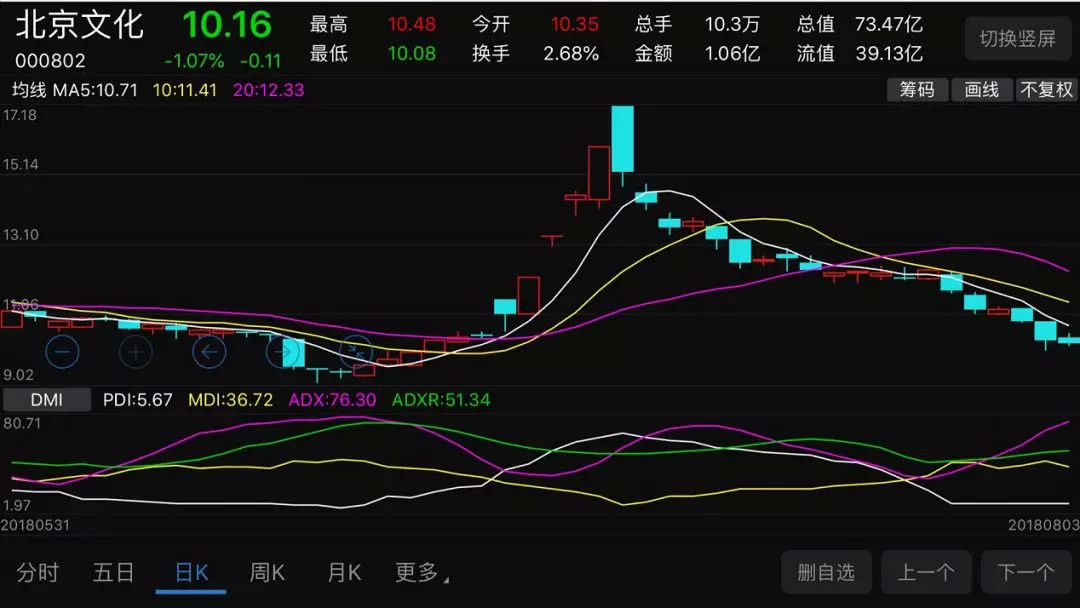 但好景不长, 2017年8月7日,北京文化发布公告称,公司董事丁江勇、副总裁邓勇、副总裁杜扬、副总裁兼董事会秘书陈晨、财务总监于晓萍于8月7日向公司提交《股份减持计划告知函》,减持公司股份合计不超过143.65万股。减持公告发布次日,北京文化相较于上一个交易日下跌了9.79%,跌去近15亿元的市值。从那时起,北京文化开始走向低迷,跌幅一度达50%,直到《药神》的爆发,股价才有了大幅回升。