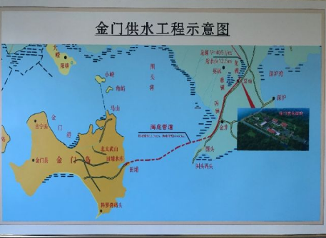 福建向金门供水工程由晋江龙湖取水泵站、陆地输水管道和跨海输水管道三部分组成,线路总长约28公里,设计流量3.4万立方米/日,工程总投资3.88亿元人民币,水费按9.86元新台币/立方米计价。