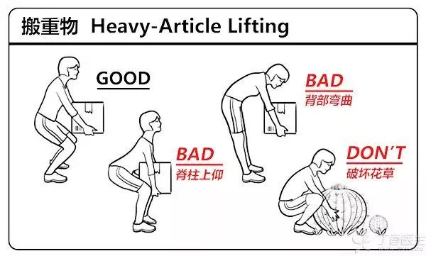 不论是搬东西,还是捡起地上的一张纸,都不要「鞠躬」般弯腰,否则会增大腰部损伤风险。
