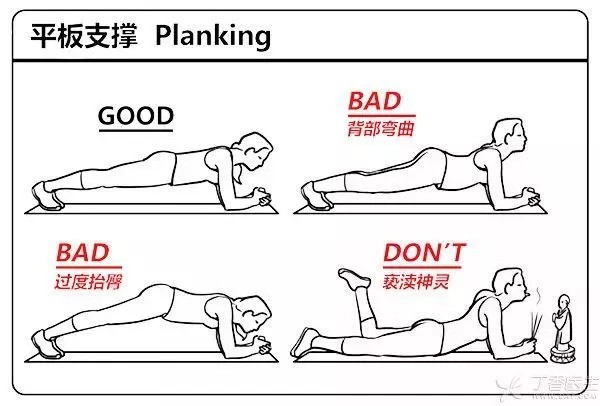 最常见的偷懒动作。如果过度翘臀,就失去了平板支撑的意义,起不到锻炼腰腹核心肌肉群的作用。