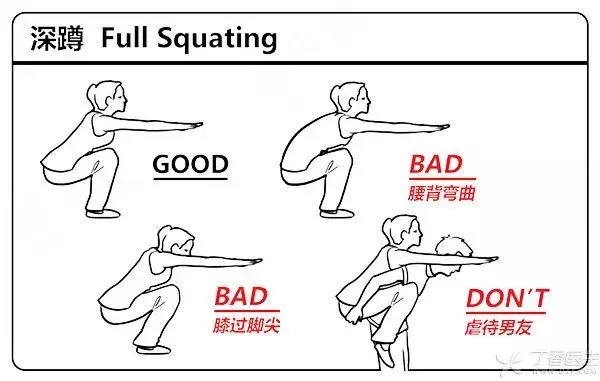只要重心在足底、屈髋动作正确,下蹲时膝盖微微超过脚尖也正常,不用担心。
