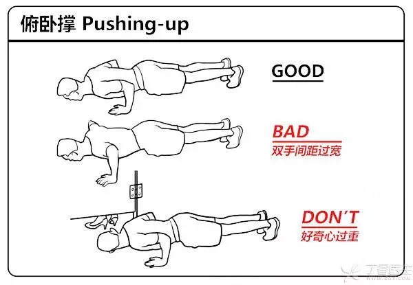 宽握俯卧撑(双手间距过宽),其实也没有什么错误,只是相对于窄握,肱三头肌不能得到充分锻炼。