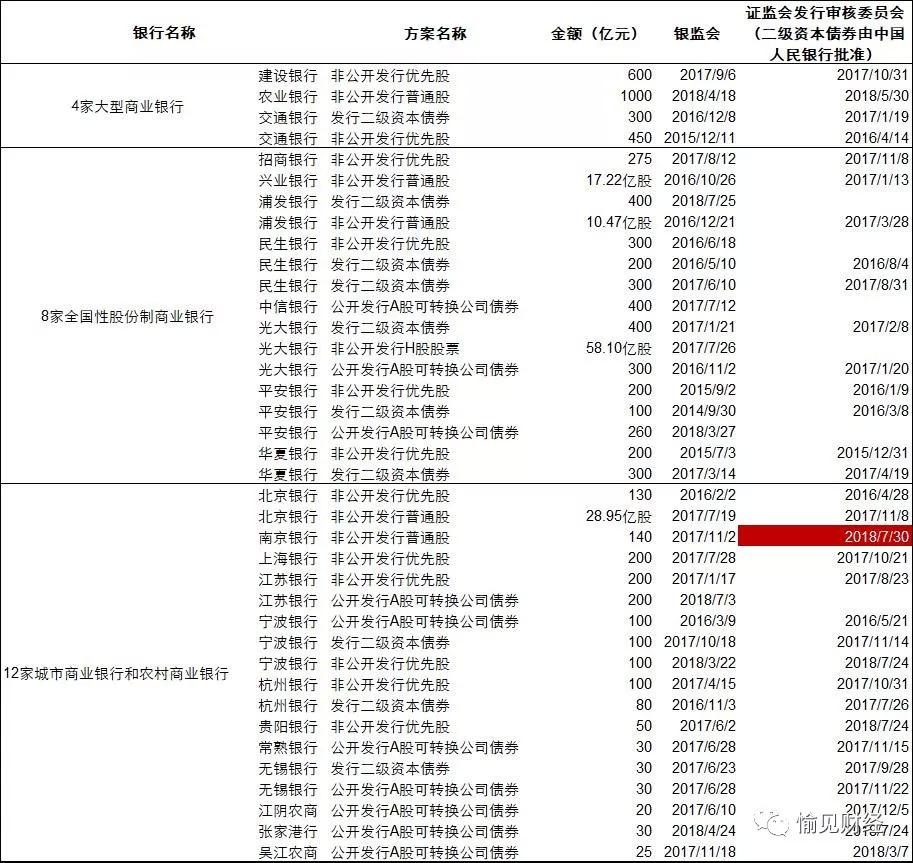 “愉见财经”做这个选题的由头,是最近南京银行(601009.SH)就遇上了这档子事儿。根据该行日前的公告,其非公开发行股票募集140亿元(补充其核心资本)的方案,于2017年11月3日已经被中国银监会江苏监管局核准通过,但到了证监会那里还是被否决,因此最后未能实施。
