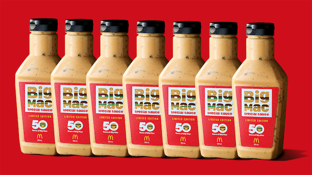 2015年,麦当劳还在澳大利亚市场限量制作了200瓶500毫升装的巨无霸酱汁,并打上编号。编号为001的那一瓶巨无霸酱,在eBay上拍卖到近18000美元。