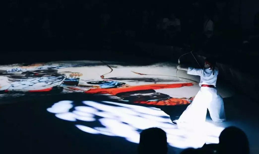 随后,当灯光暗去,全场观众们悄无声息……多媒体互动沉浸式舞台,如泼墨山水一般的细节布置,呈现汉乐府的传统美学、“唧唧复唧唧”的成长困境、“木兰精神”的隔空对话与启发等多幕场景上演。