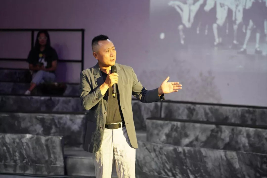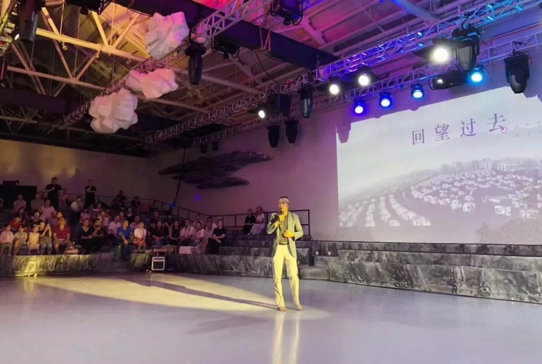 伴随着一部纪录片的播放以及主持人的介绍,出品方金地集团副总裁、金地集团华东区域地产公司董事长阳侃先生 首先为公演致开幕词。他赤脚走向舞台中央,盛情感谢到访嘉宾,从“回望过去、走向内心、连接未来”三个方面表达了这些年来的内心感触: