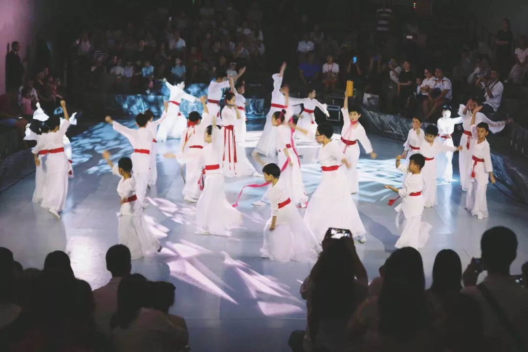 每一幕剧情的冲突与推进、每一个形体动作的解构与重现、每一场群体表演的思考与对话……孩子们在现代艺术的光影变幻中,用或大气恢弘、或百转千回、或如泣如诉……古今碰撞的心动乐章、纯澈童声的天籁吟唱,用心呈现中国文化底蕴与古今美学碰撞,真实呈现发自内心的热爱与探寻。