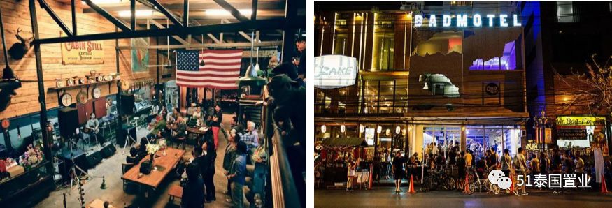 Ekkamai和附近的Thong Lor夜生活热闹也是因为这两个区域是曼谷酒吧聚集区,相当于北京的工体和三里屯。Machine Age Workshop是一家以专门收集美国工业产品为主题的酒吧,这可能在整个东南亚都是少见的,值得一提的是这里的商品都来自于18世纪后期到19世纪中期的美国;Badmotel酒馆也是其中代表,一栋全白色的三层楼,既时髦又带着十足的破旧感……