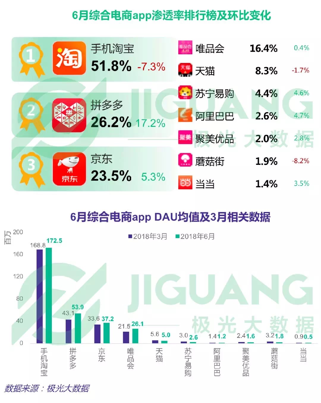 1、手机淘宝渗透率环比下降 拼多多达前者一半