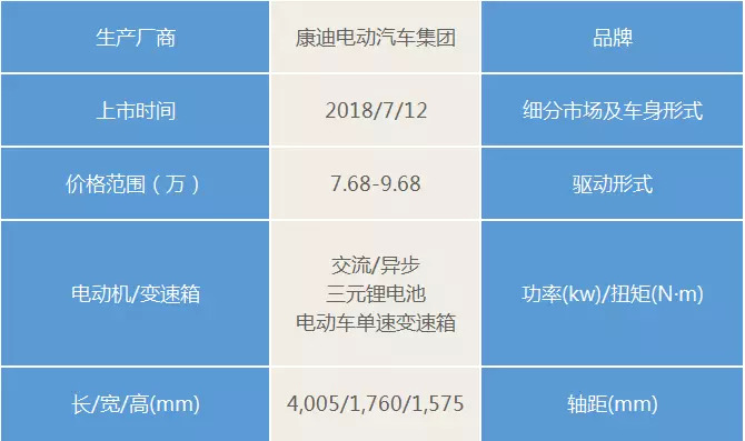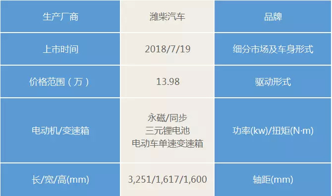 配置方面,新车带有车门黑色运动包围、导流尾翼、行车电脑、电动空调、中控彩色触摸屏、两车门电动升降等,整车营造出圆润小巧的感觉。160km的续航里程在现阶段的新能源汽车中,已经称得上是很低的数值了,而且在动力参数和充电速度方面,新车相比同级也毫无优势可言,市场前景并不明朗。