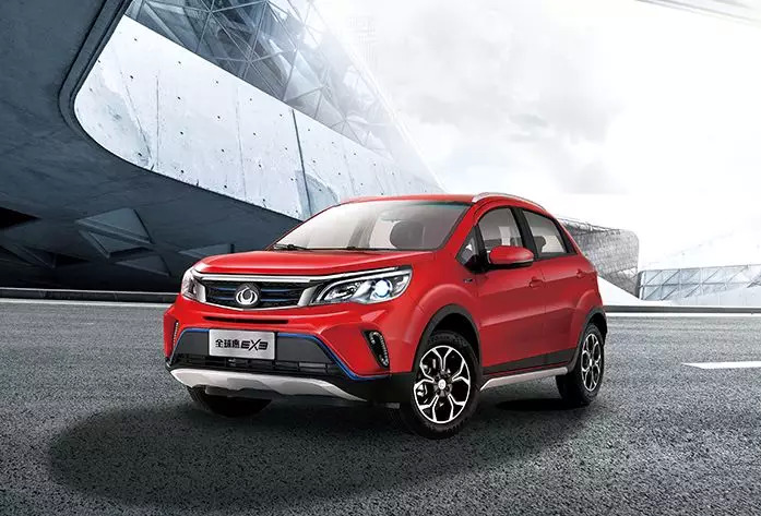 全球鹰品牌是吉利2008年发布的战略品牌,如今的康迪电动汽车集团由吉利控股的上海华普国润汽车有限公司,与浙江康迪车业有限公司各拥有50%股份投资组建。全球鹰EX3基于吉利远景X3打造,定位为纯电动小型SUV。整车外观与今年3月亮相时并无二致,采用展翼式前脸,中网格栅为双横条设计,在远景X3基础上加入了许多蓝色元素以彰显自身的新能源身份。