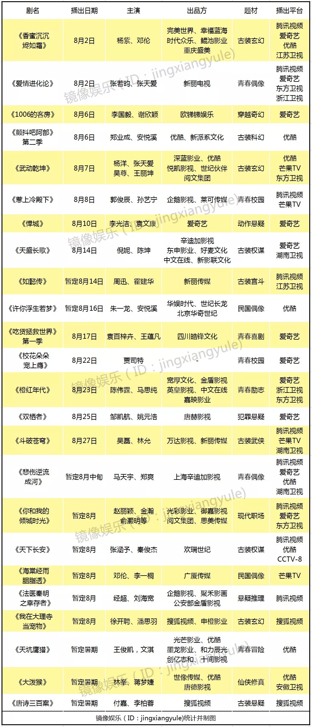在这24部剧集背后,有将近60家公司参与竞争,新丽传媒以《爱情进化论》开局,不敌同期上线的《香蜜沉沉烬如霜》;欢瑞的《天乩之白蛇传说》意外下线,《天下长安》两次延播;唐德的水逆还在继续……