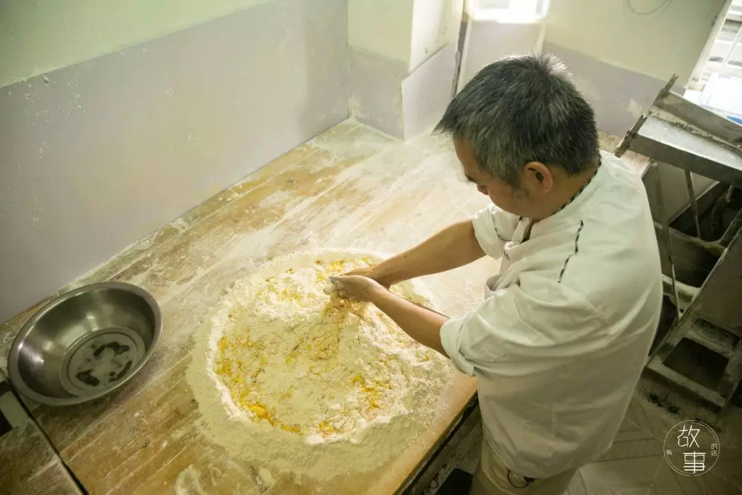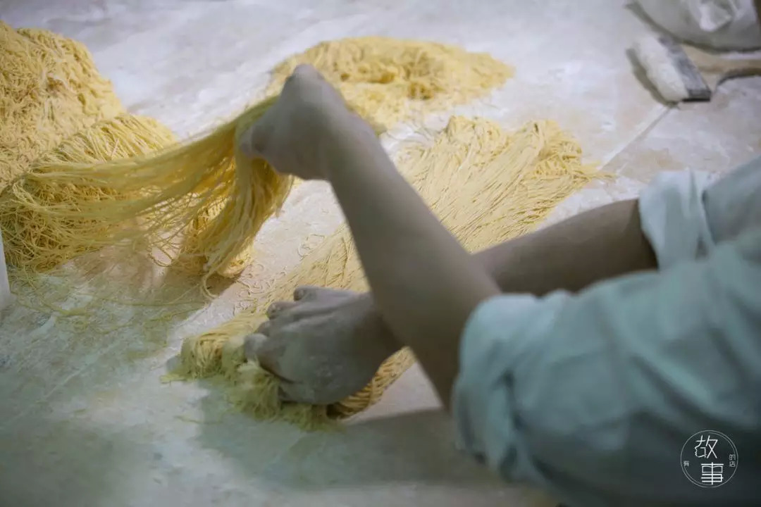 拍摄云吞面的制作过程时,本就话少的星哥变得更为沉默,在那十平米大的作坊里,除了操作机器的那段过程以外,其余时间安静得连呼吸声都变得格外明显。为了拍摄需要,亦是为了活跃气氛,我问星哥平时是否会放点音乐听听,他笑笑告诉我不会,因为音乐会让人分心,一旦分心,做出来的面就不好了。