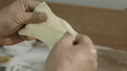 包裹馅料的云吞皮同样来源于此,只是标准更为严格,必须在纸张般轻薄的基础上更薄,方能用刀将其切成大小均一的正方形状。