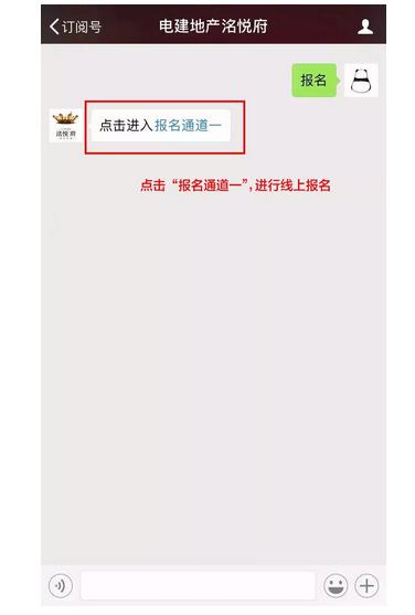 现可以在线进入报名登记,进入公众号“电建地产洺悦府”,输入“报名“并发送至公众号后台,后台会自动回复“报名通道一”。点击“报名通道一”,填写相关资料后,即可报名。一份购房证明只能报名一次;一个报名序号对应一个购房证明号,即不同的购房证明号持有人不能合并报名;摇号结果查询请关注:南京公证处官网公示。