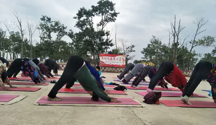 每天早晨六点和下午五点,村民们都会相聚小广场练习这种起源于印度的古老健身运动,已成日常。