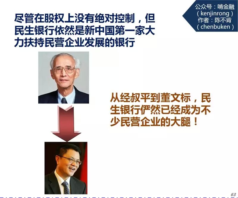 尽管民间资本在股权上没有绝对控制权,但民生银行依然是新中国第一家大力扶持民营企业发展的银行。