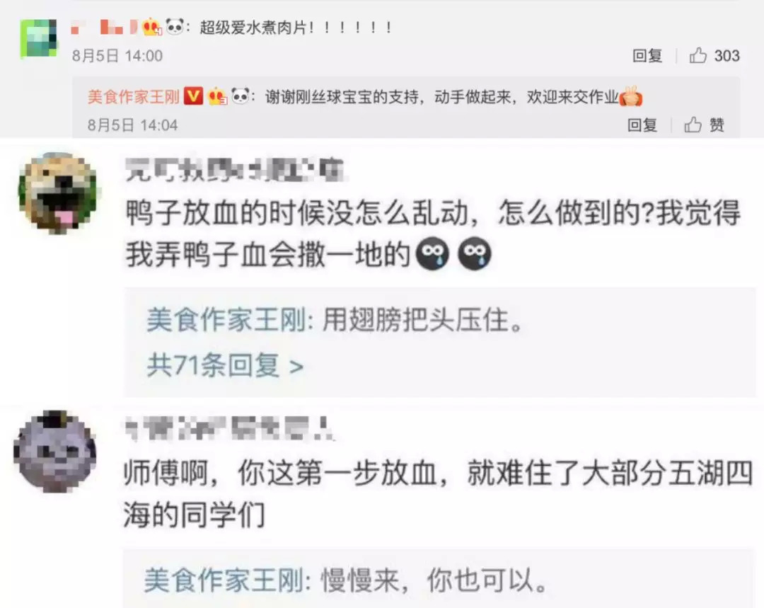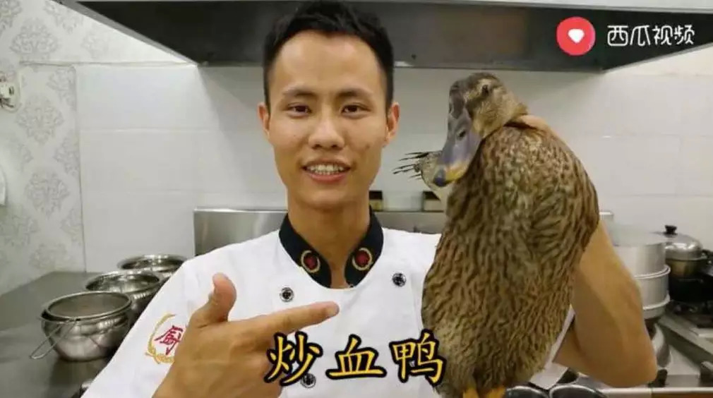 什么INS网红风、日式性冷淡风,统统不存在的,见血的视频甚至有点“可怕”。开篇提到的王刚老师代表作“永州血鸭”,获得一众微博大V转发,连微博CEO@来去之间都发了一个被吓哭的表情。但一点都不妨碍观者流口水:“看起来好好吃啊!”真是吃货民族啊。