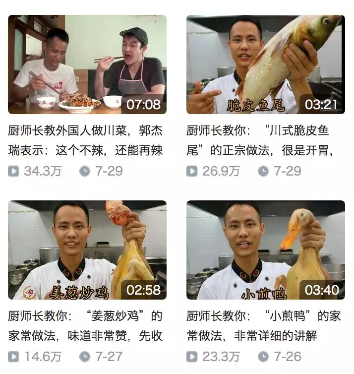 “哈喽!大家好,我是王刚,本期视频我跟大家分享一道xxx”,在说了一万遍的开场白之后,王刚老师便会把活鸭、活鱼、生鸡、生肉怼到你脸上,被老师掐住咽喉的动物们翻着白眼,“硬核”美食教学的开头就完成了。