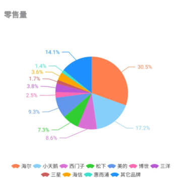 综合来看,洗衣机市场处于平稳增长的区间,高端化趋势明显,市场依然由海尔、小天鹅、美的来主导,中小品牌遭遇到更大的发展压力。