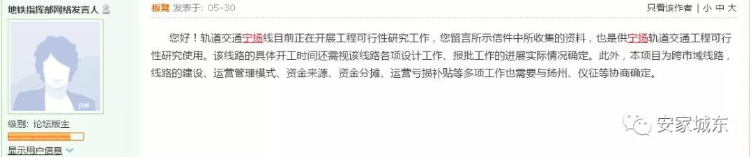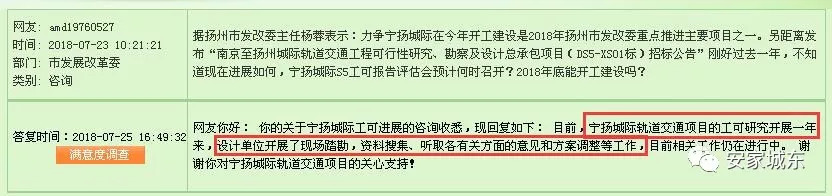 关于宁扬城际工可进展,7月份扬州市长信箱也做了答复: