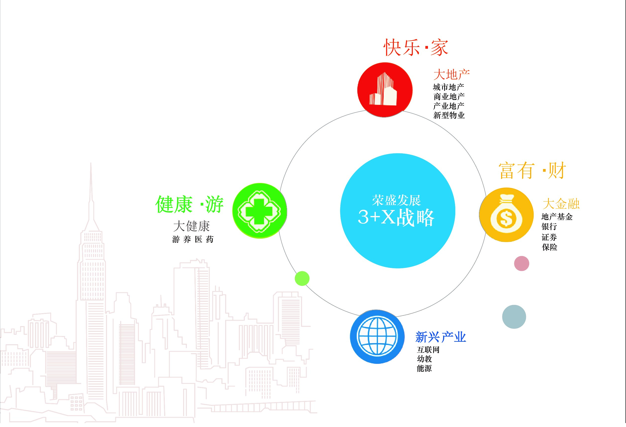 荣盛发展意识到智慧时代将对人居产生深远的影响。因此,荣盛发展通过对企业传统业务及资源进行再整合,加大生态旅游、养老养生、产业新城等领域投资,逐渐形成以大地产为主干,大健康、大金融为两翼,互联网等新兴产业为辅助的“3+X”战略的新格局。