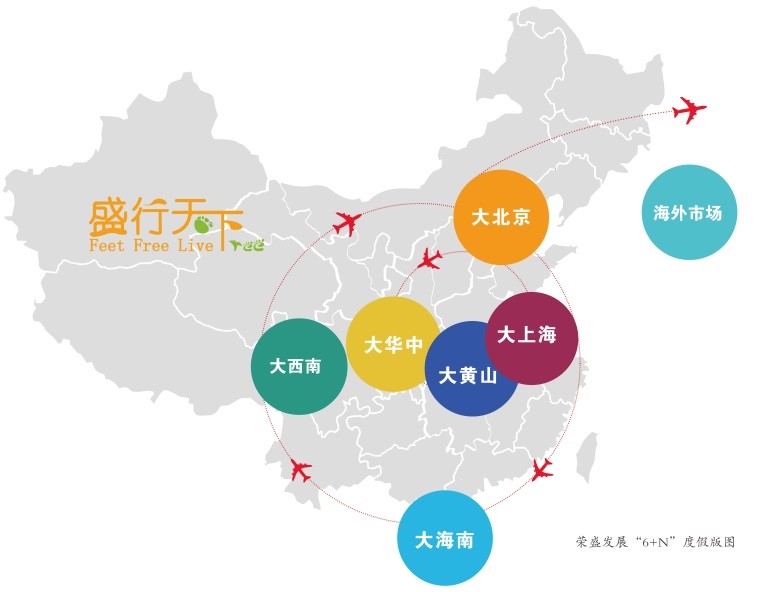 大健康板块以“旅游、度假、养老、养生”四大产业为主,快速形成“6+N”的区域布局。其中,“6”即大北京、大黄山、大海南、大上海、大华中和大西南等六大区域,“N”主要指太平洋、印度洋、欧美与非洲草原等为主的海外市场和国内六大区域外符合条件的零星市场;坚持为追求快乐、健康、崇尚有品质、个性化生活方式的儿童、成功人士和老人提供游乐、度假、医养产品与服务。