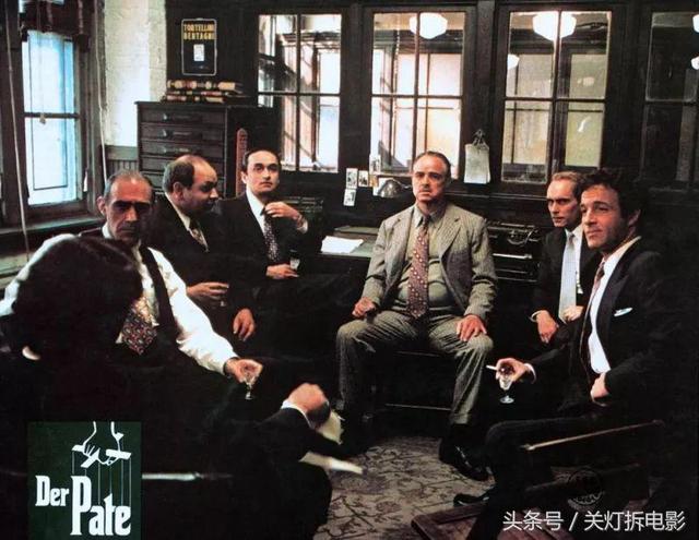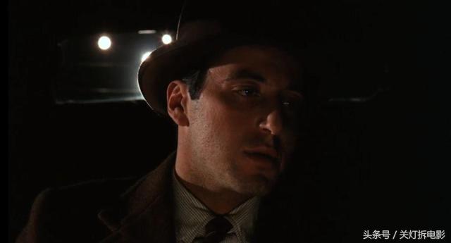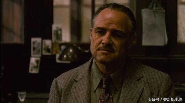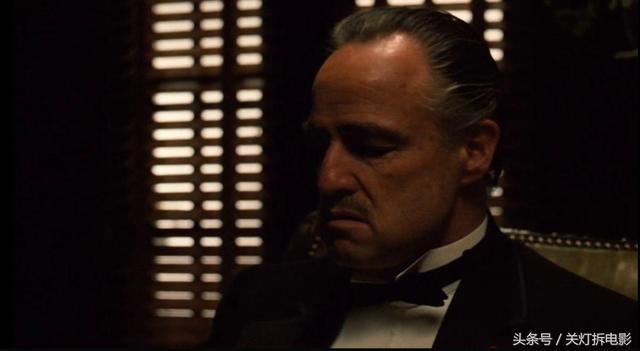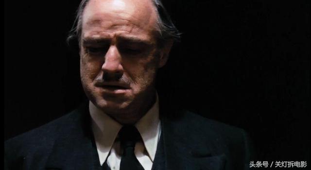 即便是在室外的大太阳底下,老教父的面孔依旧被包裹在阴影之下。