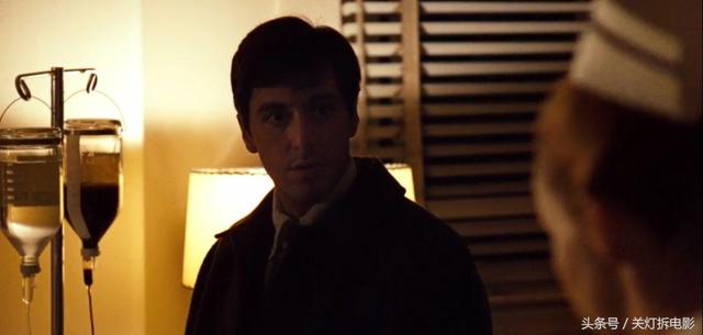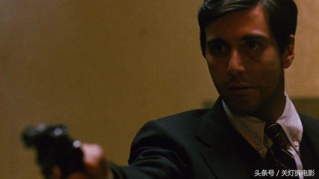 当麦克成功执行任务杀死了对立家族的老大,这也意味着他彻底承担起了科里昂家族的使命,此刻阴影占据了他面部的四分之三,也是开篇以来他参与家族事业最深入的一次。
