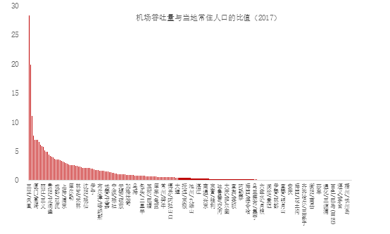 图表7 机场吞吐量与当地常住人口的比值(2017)