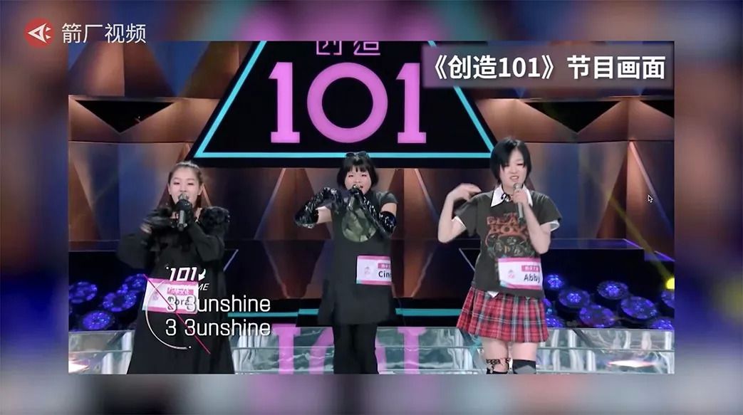 要想在娱乐圈立足,三位女孩还面临着重重考验。今年4月,3unshine参加了女团选秀节目《创造101》,在听到3unshine的名字后,整个场子都沸腾了起来,而在头戴鸭舌帽、素颜朝天的三人上台后,妆容精致的姑娘们停止了鼓掌,露出了半是心疼半是不解的神情。