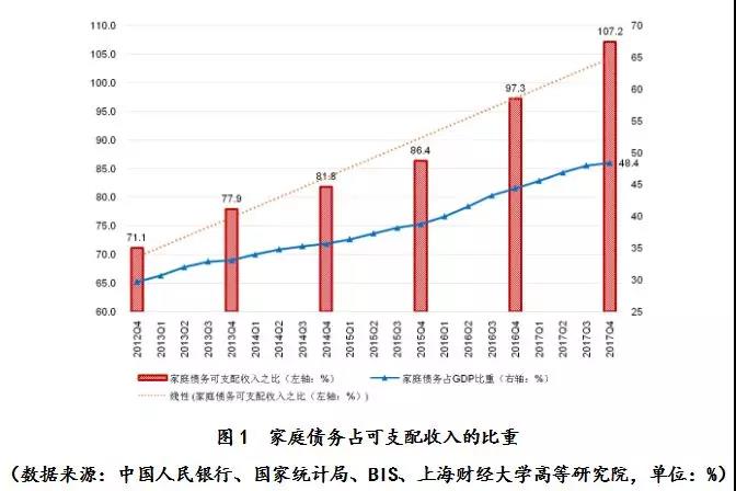上海财经大学高等研究院日前发布的一份报告指出,中国家庭债务已逼近家庭部门能承受的极限。截至2017年,我国家庭债务与可支配收入之比高达107.2%,已经超过美国当前水平。