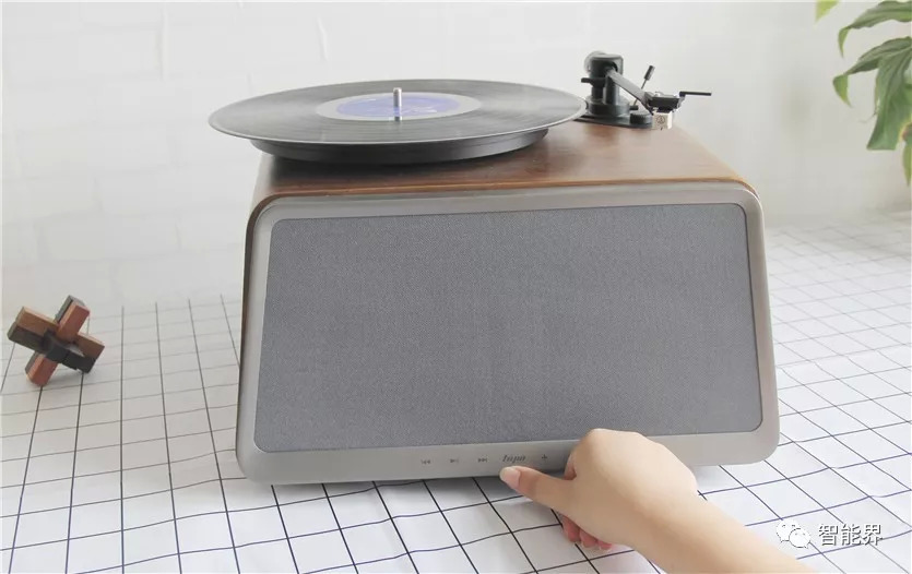 一体式设计打破传统黑胶唱机庞大的配套设备,保留黑胶唱机播放的仪式感。黑胶唱机的复古与智能音响的时尚在这里没有丝毫违和感。
