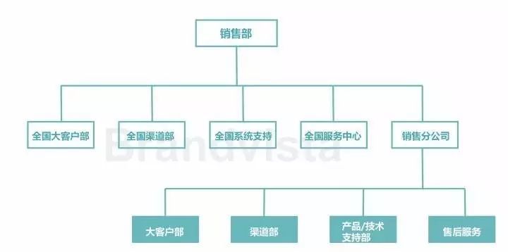 为了更好、更便捷地在售前、售中、售后三个环节满足全国范围的广大客户的需求,销售部往往会根据工作区域划分为多个分公司部门进行通力合作,不同的分公司部门之间虽然工作职责不尽相同,但各自拥有专职管辖的职责区域,最终都由全国总部负责统一管理。