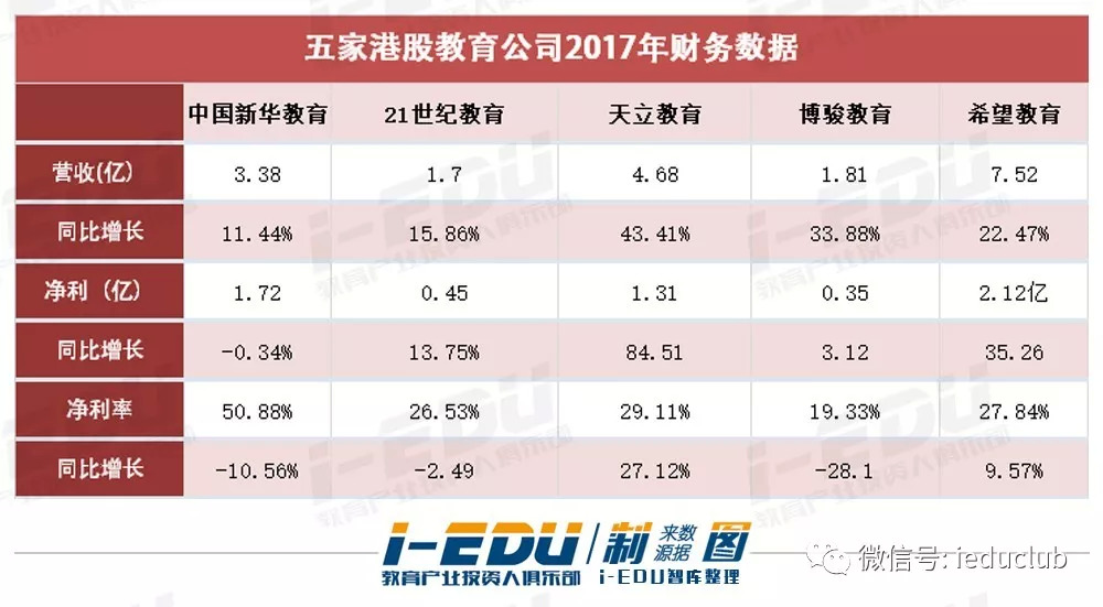 在业绩表现上,今年在港上市的5家公司有着明显差异。营收方面,希望教育2017年营收总额为7.52亿元,为5家公司最高;21世纪教育2017年营收总额为1.7亿元,居5家公司最末。从净利率看,虽然中国新华教育2017年净利率较去年有所下降,但仍达50.88%,5家公司中博骏教育净利率最低为19.33%,且较去年下降28.1%,对此博骏教育在其招股说明书中表示,是由于学校网点扩张产生额外薪金成本及行政开支。