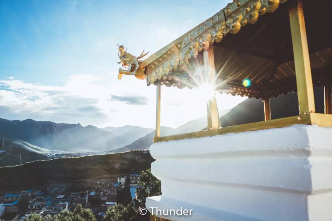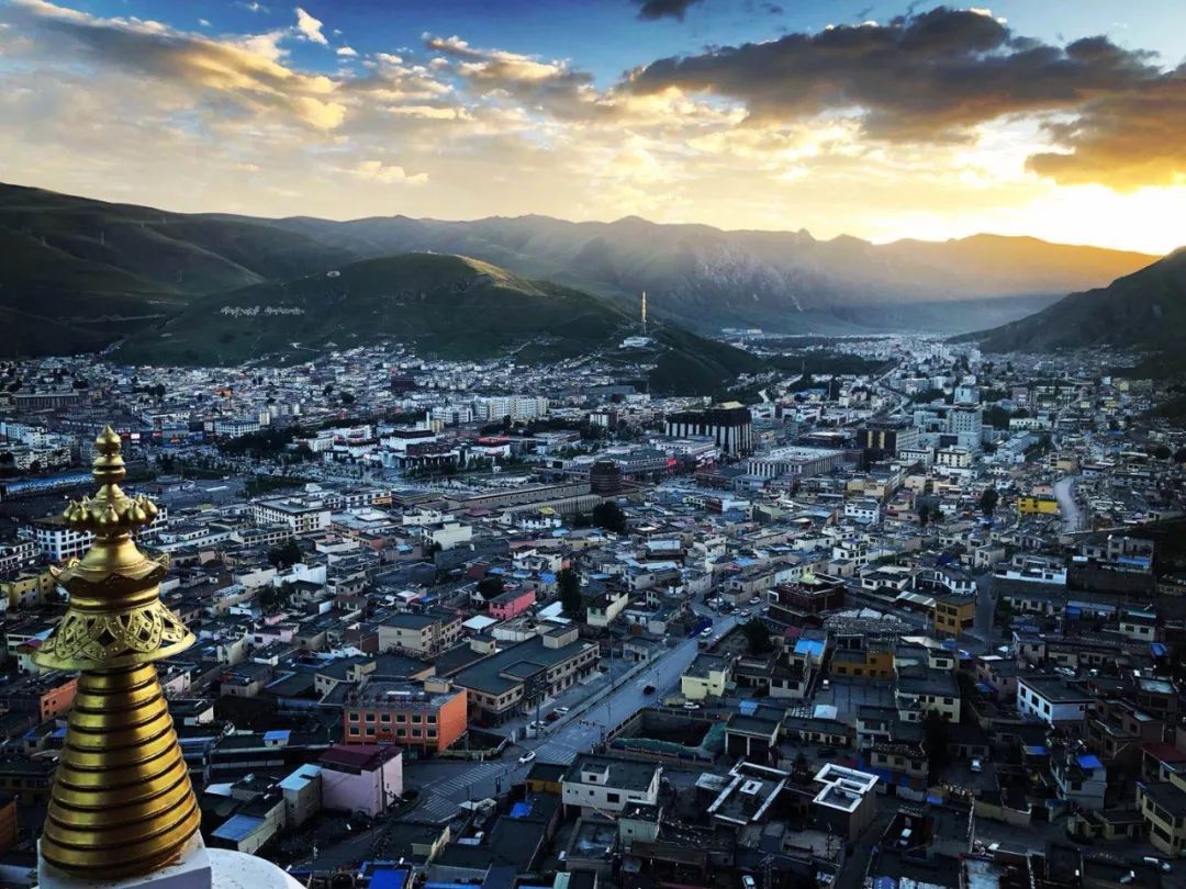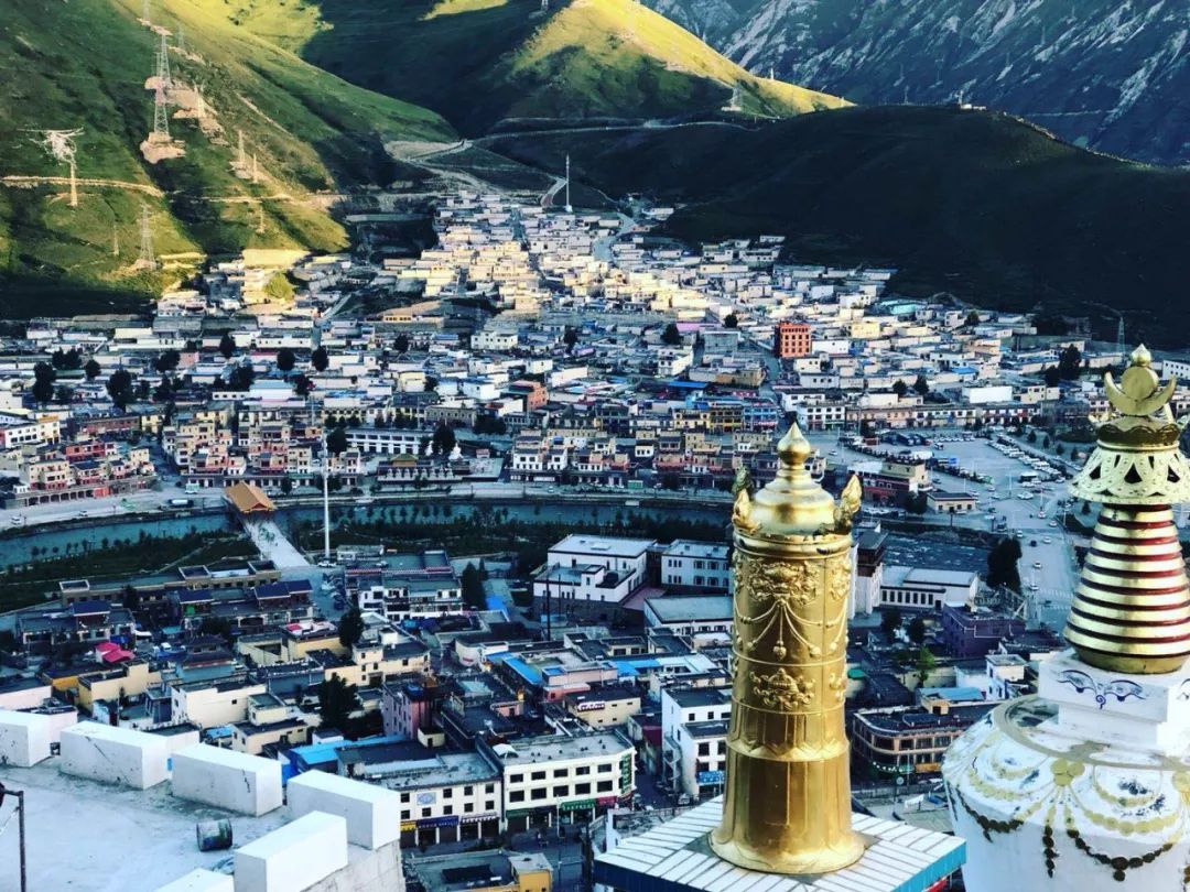 玉树州府结古镇就位于结古寺山脚下,夕阳西下时,站到结古寺大殿旁俯瞰整个城市,在落日的余晖中和金顶的映衬下,会有种“小拉萨城”的错觉,风景特别美。